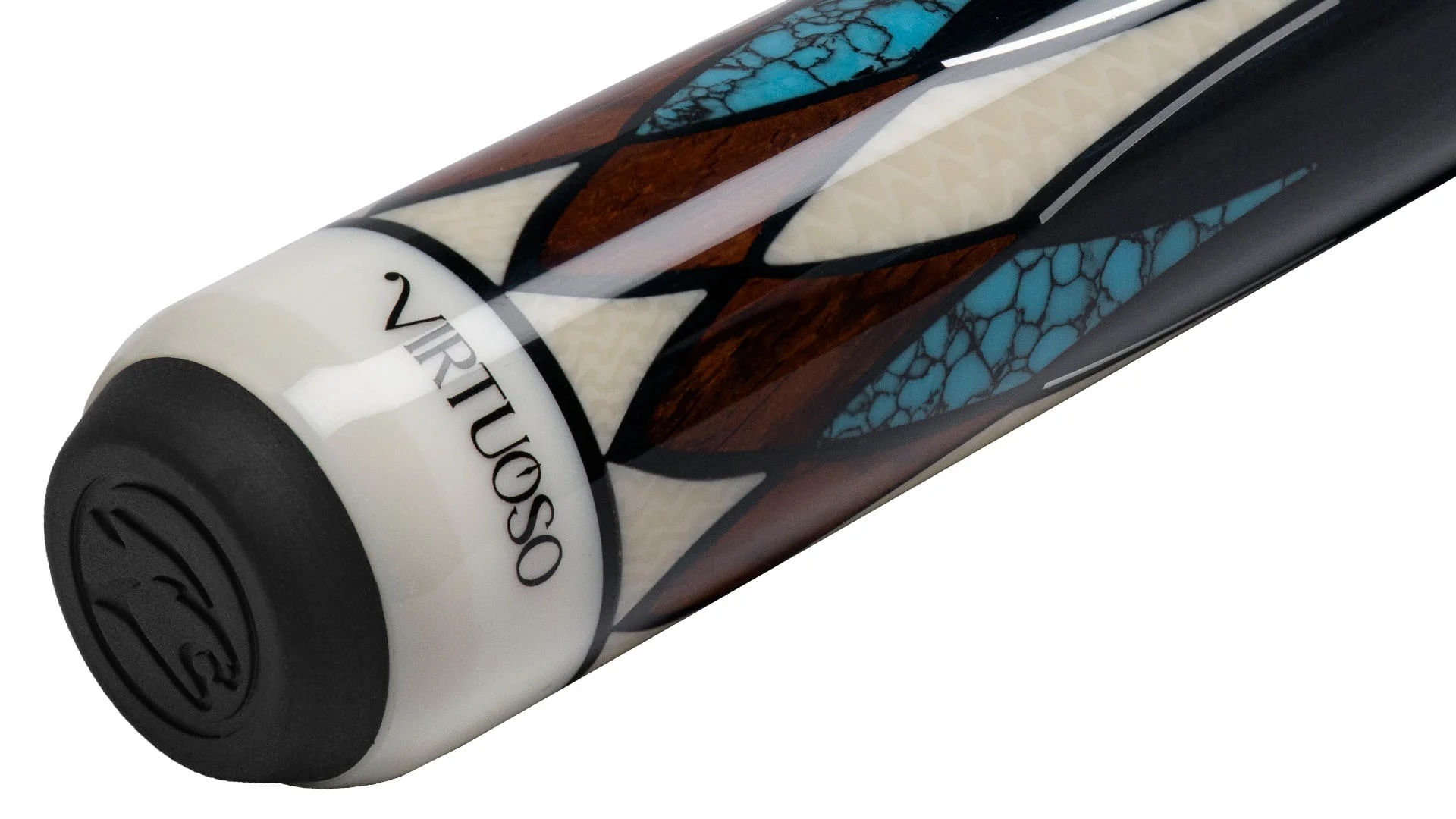 Detalles ornamentales puntiagudos en la manga de la culata en marfil, cocobolo y turquesa